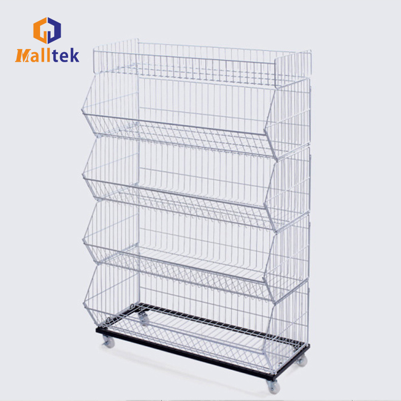 Contenitore in filo metallico rotante per supermercato personalizzato, gabbia a rete promozionale con ruote